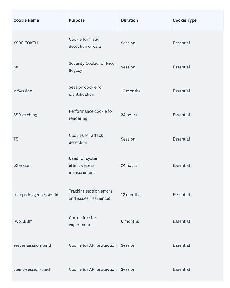 We’ve provided a detailed breakdown below of all the cookies we use on our website, and why we use them.